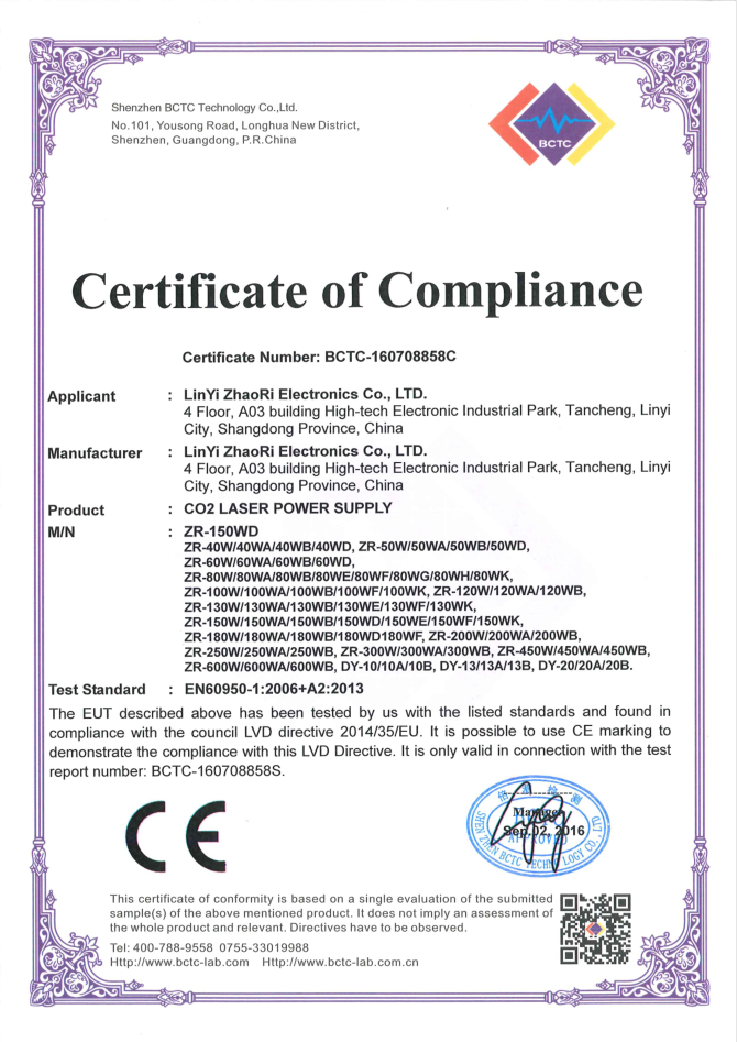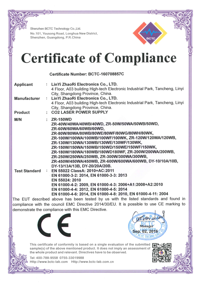 • 山東朝日電子有限公司是一家從事CO2激光電源研發(fā)、生產、銷售于一體的專業(yè)廠家,主要產品為40W/50W/60W/80W/100W/120W/130W/150W/200W/300W/400W二氧化碳激光電源。公司自2003年成立以來,始終堅持“以質量求生存,靠信譽謀發(fā)展”的理念.公司擁有業(yè)界高素質管理人才和技術精英,所有原材料都經(jīng)過嚴格細致的檢測檢驗,生產流程嚴格貫徹執(zhí)行ISO9001質量管理體系。卓越的品質、合理的價格和全體員工的不懈努力使我們的公司已穩(wěn)步走在行業(yè)的前列。